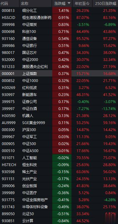 截止下午2点半,个股和板块依然是红多绿少,全A等权指数涨0.5%。