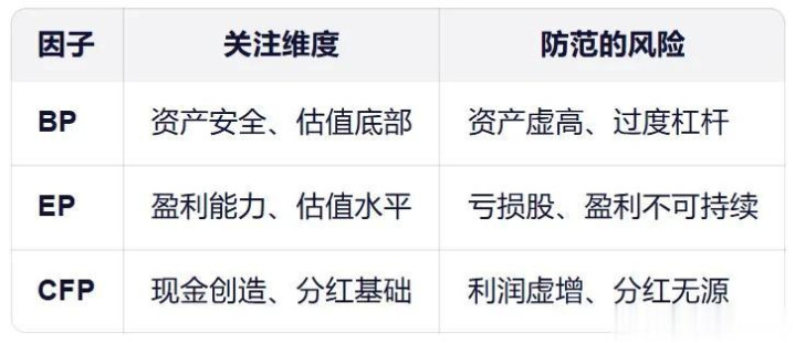 但它更有意思的点,还不只是在于股息率有多高,而是这个股息背后的支撑是非常扎实的。拆开来看这个指数,本质上就是叠加了两个策略,高股息红利+基本面价值。后者是对前者的支撑,如果没有持续的价值,这个红利就是不可持续的,甚至是有风险的。